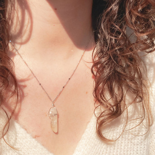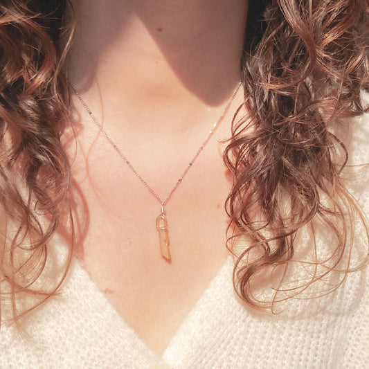 Bergkristal ketting zilver oranje