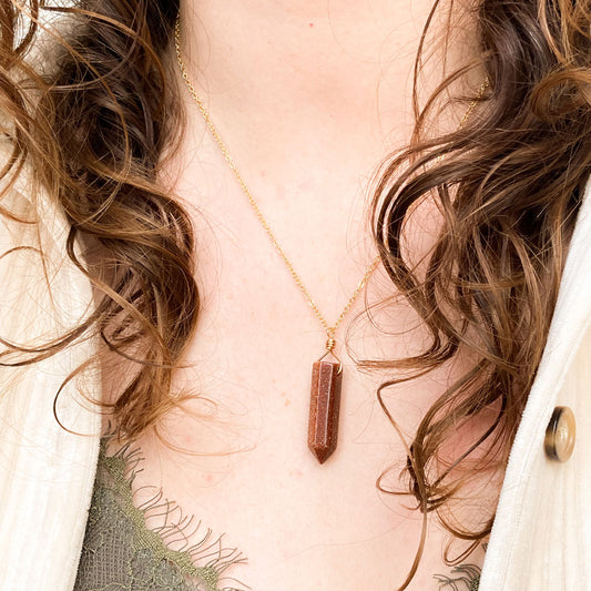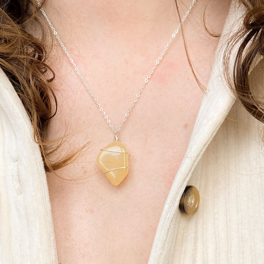 Gele aventurijn wrap ketting - zilver (one of a kind)