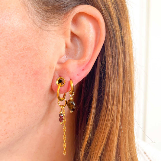 Selena oorbellen granaat - goud