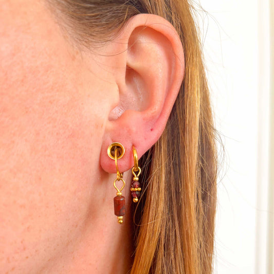 Ava oorbellen granaat - goud