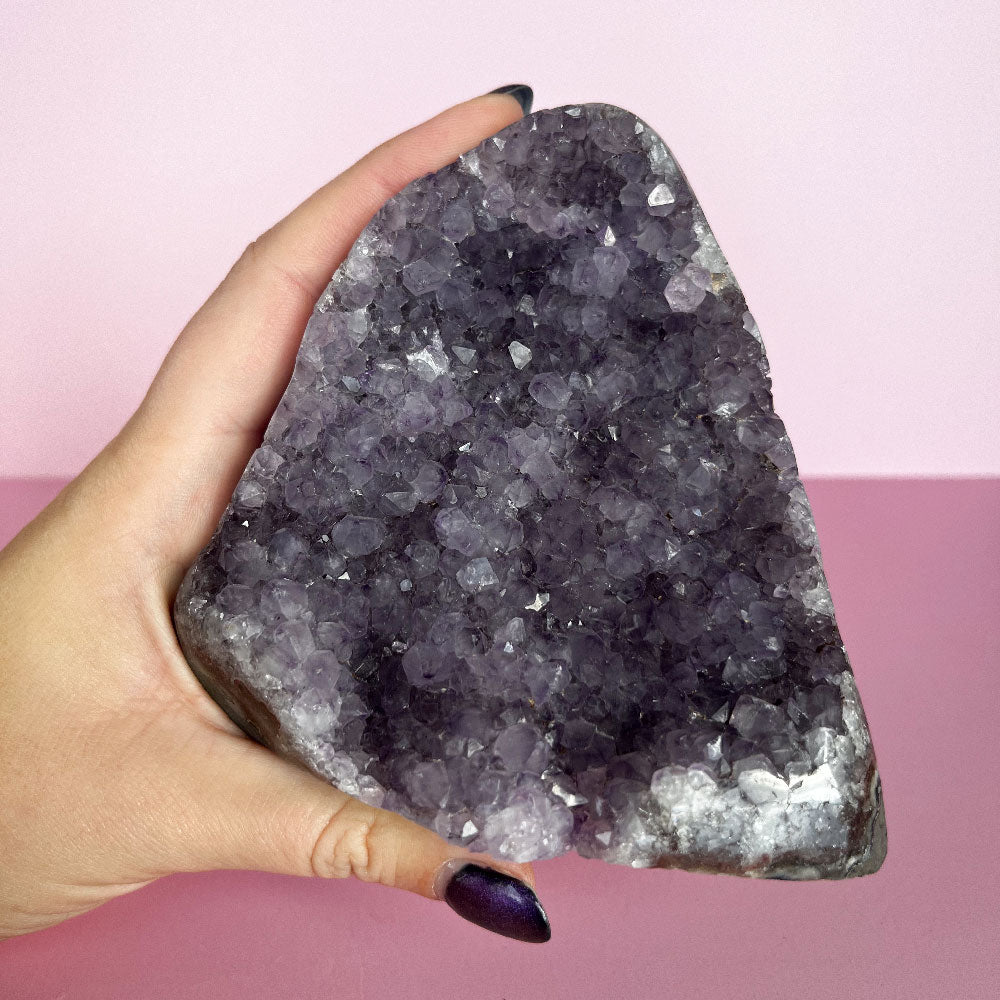 Amethist staat bekend als de steen van rust, intuïtie en spirituele bescherming. Ze helpt je ontspannen, je hoofd helder te maken en negatieve energie los te laten.